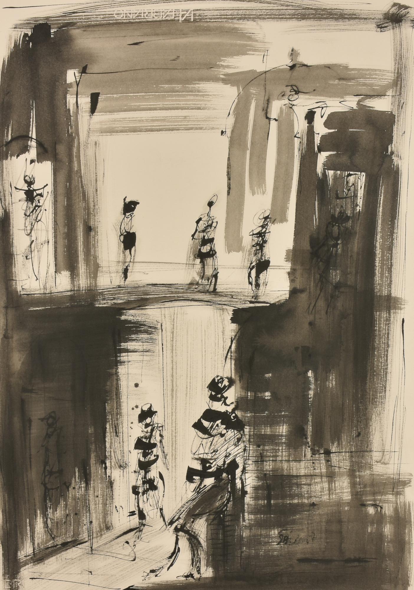 S. B. SENZA TITOLO tecnica mista su carta Fabriano, cm 70x50 firma, data...