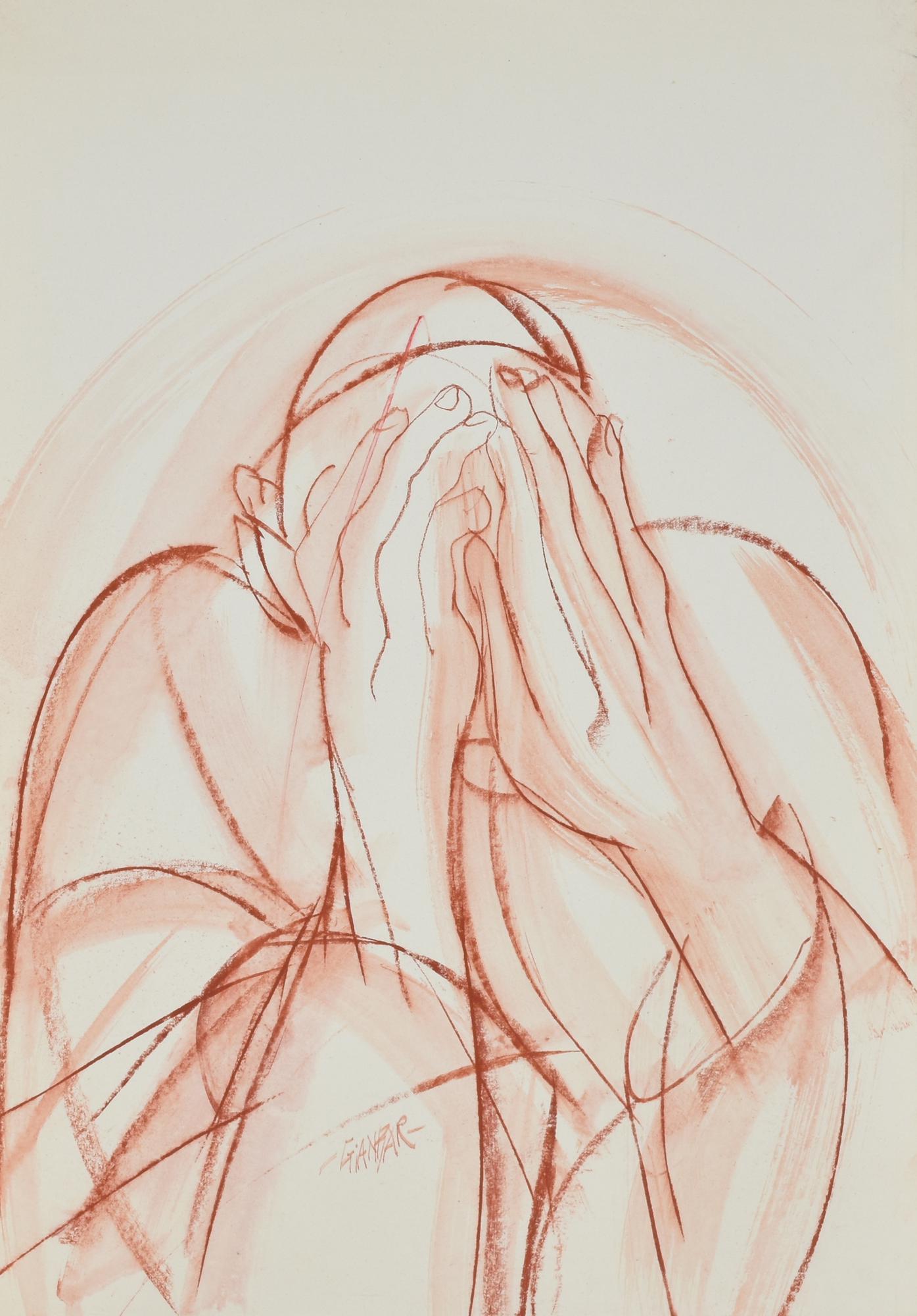 Lotto 75 | GIANBAR (Gianni Baretta) LE MANI SUL VISO tecnica mista su carta, cm 50x35...