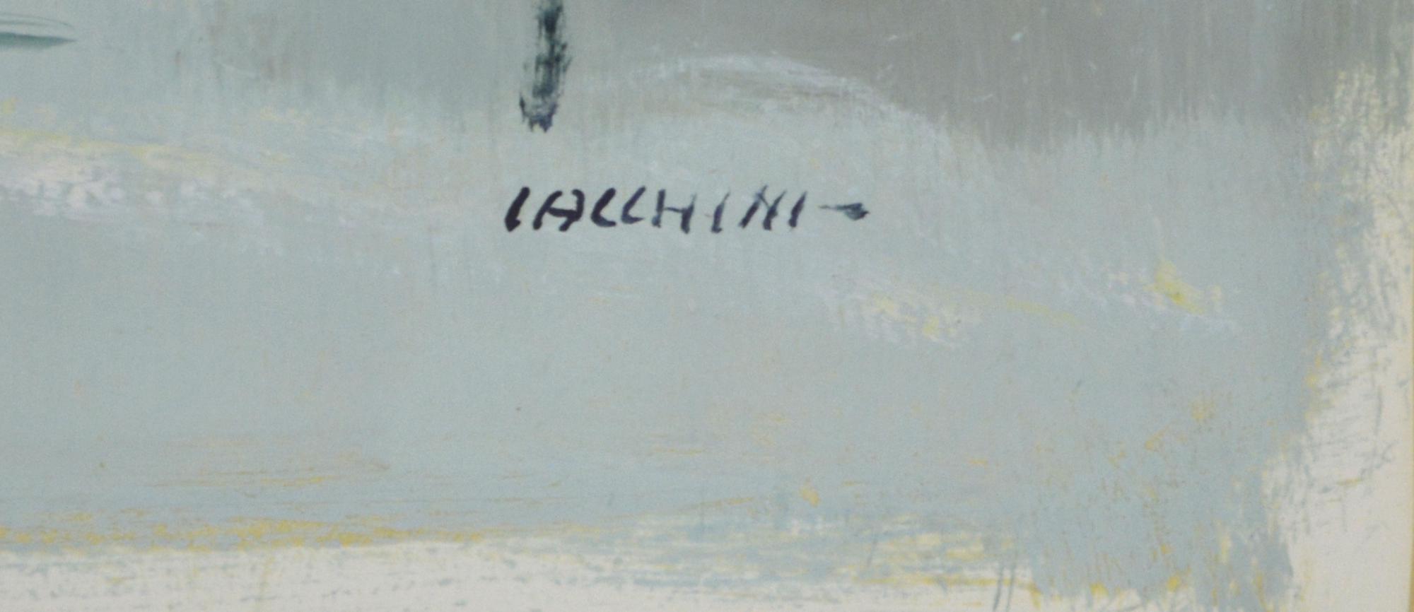 Giuseppe Jacchini PAESAGGIO INVERNALE tempera e gouache su cartone, cm 50x65...