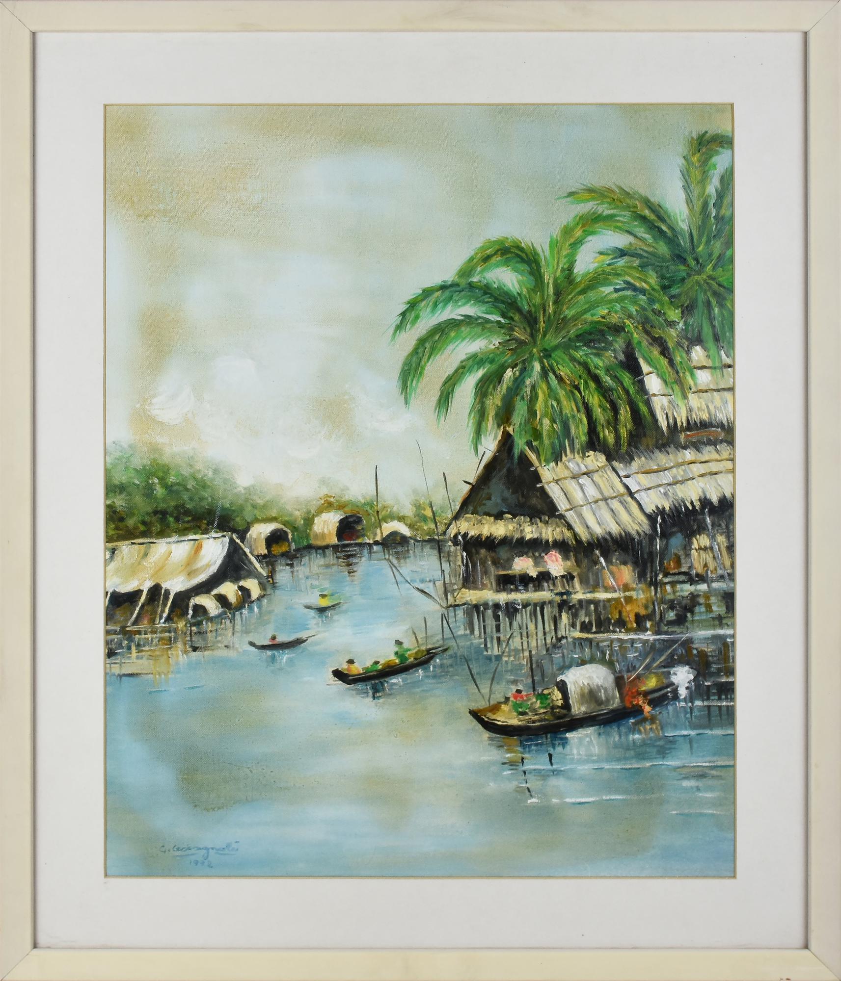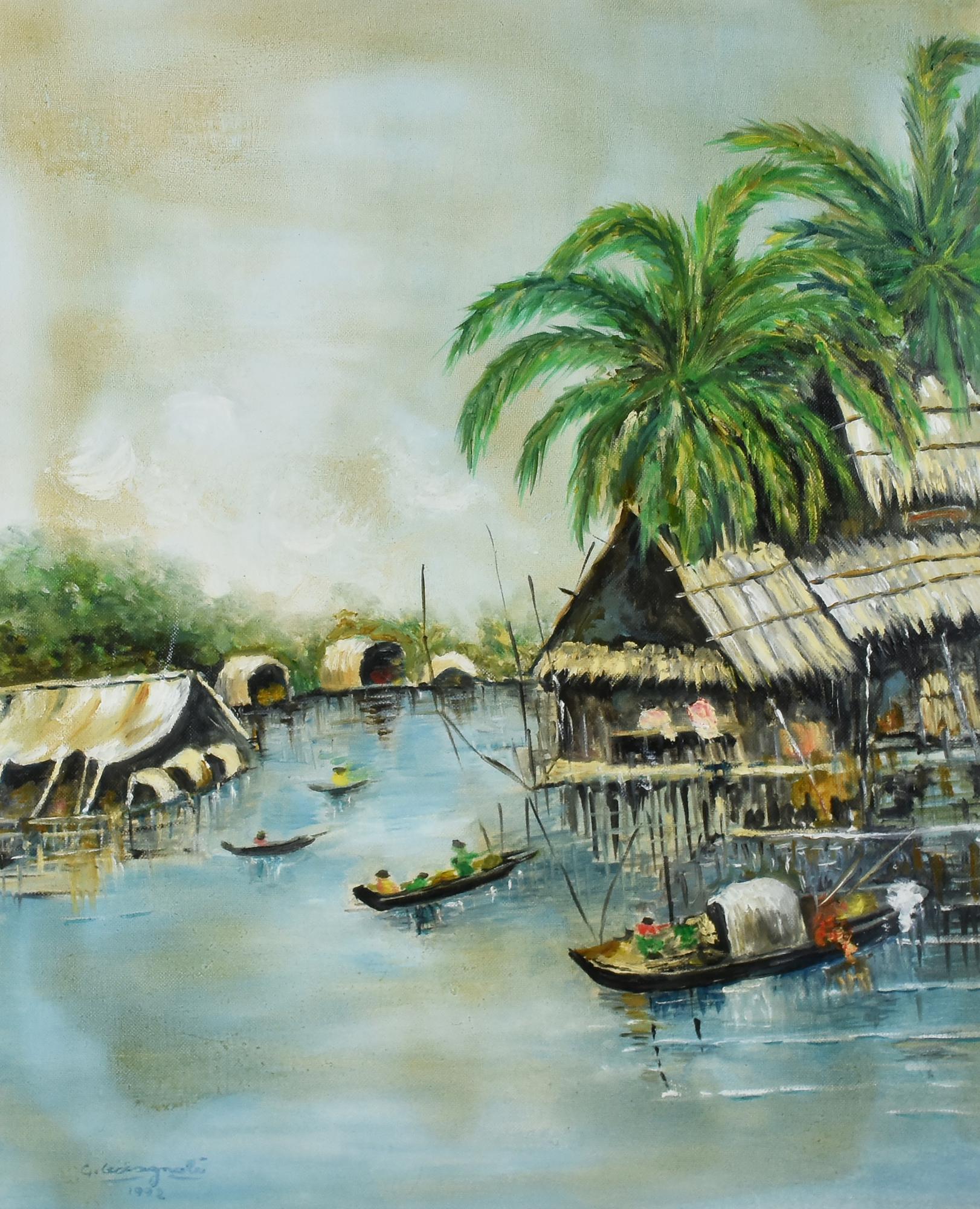 Gina Ceccagnoli BANGKOK - MERCATO GALLEGGIANTE olio su cartone telato, cm...