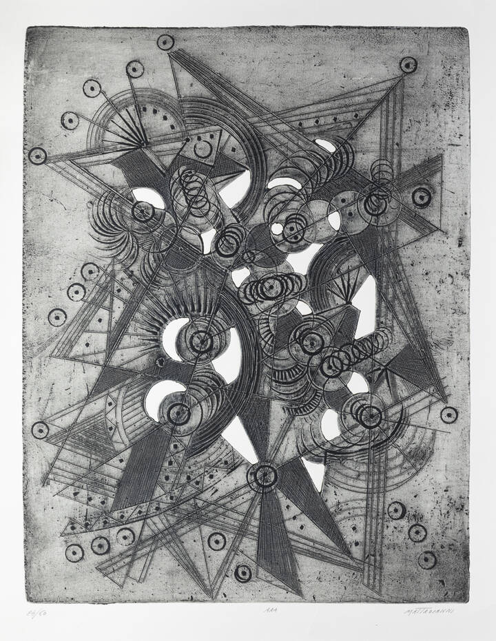 Opera firmata in basso a destra, numerata in basso a sinistra e inititolata in basso al centro (a matita sul foglio)