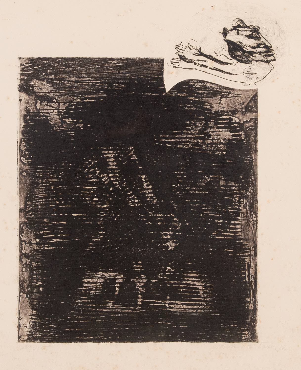 Luciano De Vita (Ancona, 1929 - 1992), “Mostri”.Litografia su carta firmata in basso a sinistra