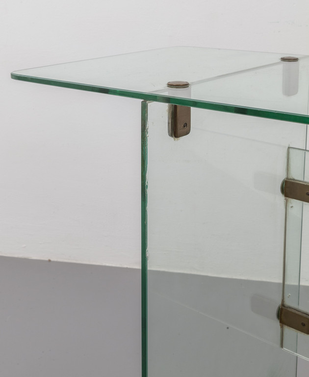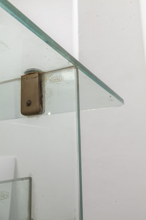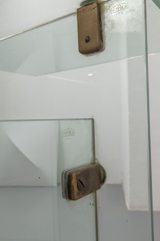Cristallo temperato marcato 'Vitrex' legno di ciliegio ottone.