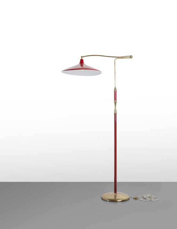 Una lampada da terra ad altezza regolabile' Bridge' per ARREDOLUCE circa 1947.