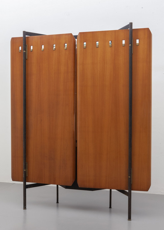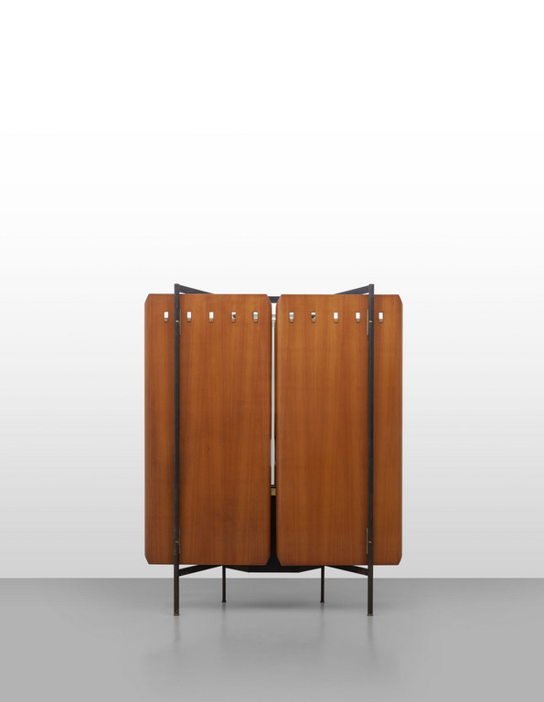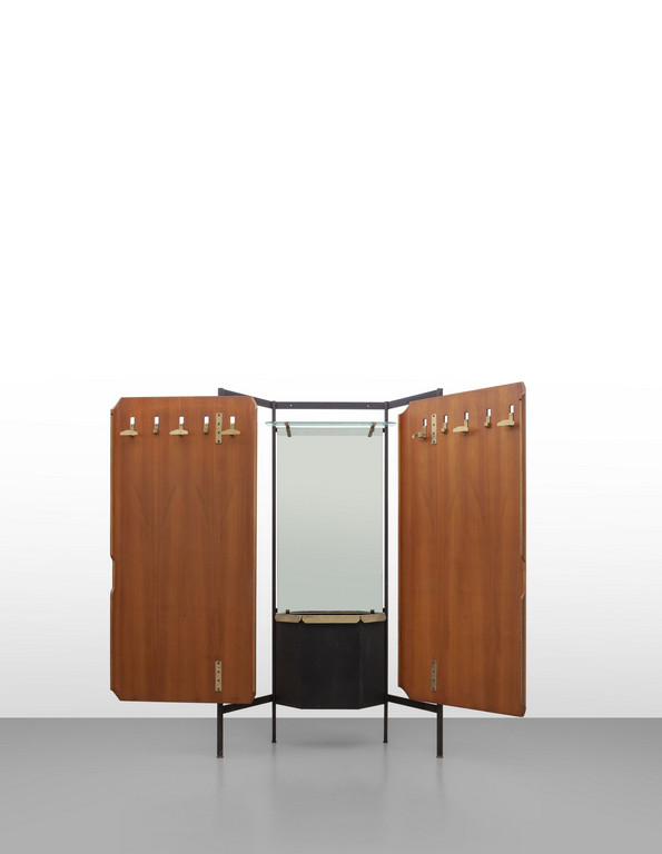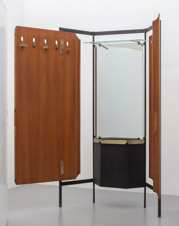 Acciaio verniciato compensato curvato placcato teak ottone cristallo argentato.