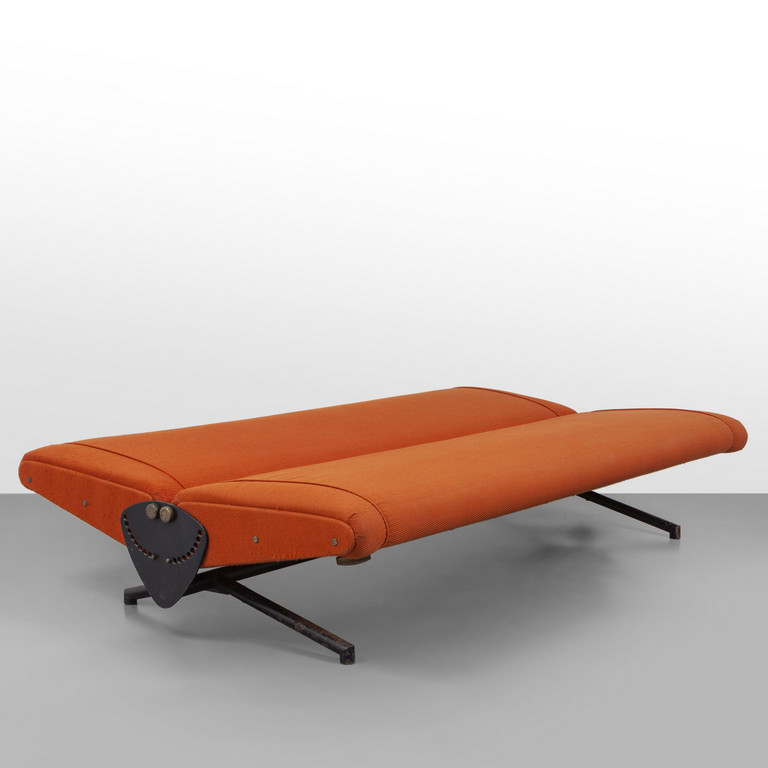 Un divano-letto ad ali mobili 'D70' per TECNO 1954.