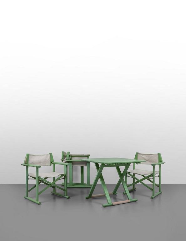 Quattro poltroncine e un tavolo della serie 'Hollywood' per FRATELLI REGUITTI 1968.