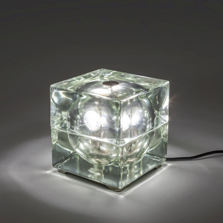 Una lampada da tavolo 'Cubosfera' per FIDENZA VETRARIA 1968.