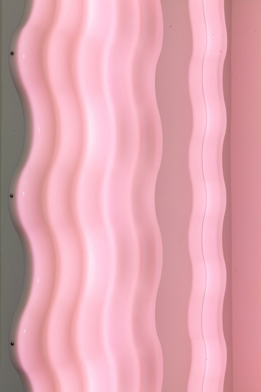 Cornice luminosa di perspex opalino neon cristallo argentato.