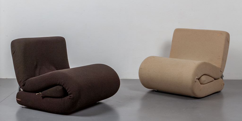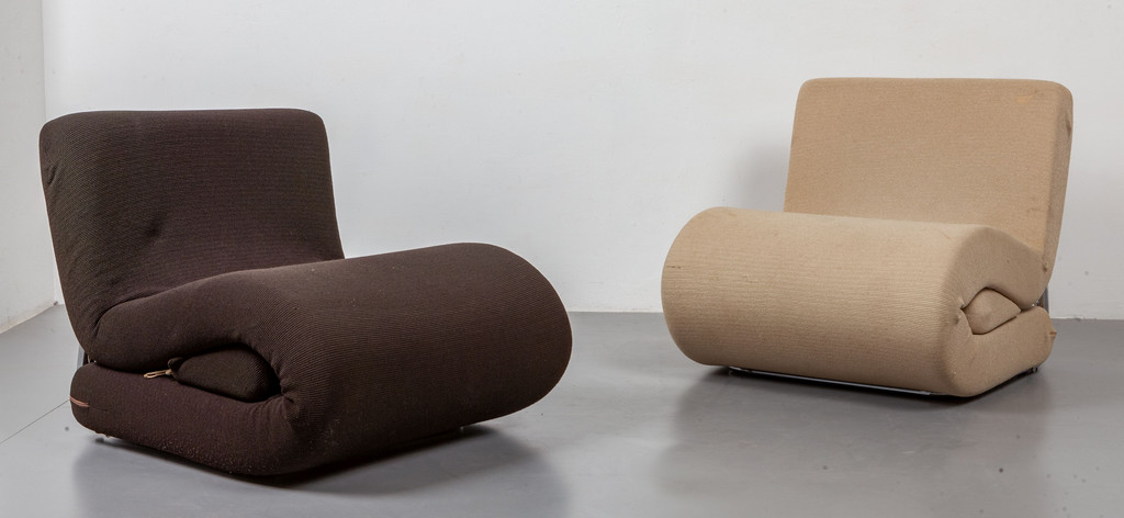 A pair of lounge chairs convertible into beds manufactured by 4P 1970.