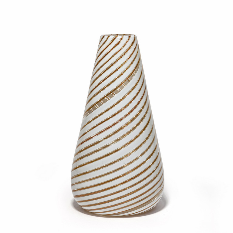 Un vaso conico a canne ritorte lattimo cristallo e avventurina circa 1950.