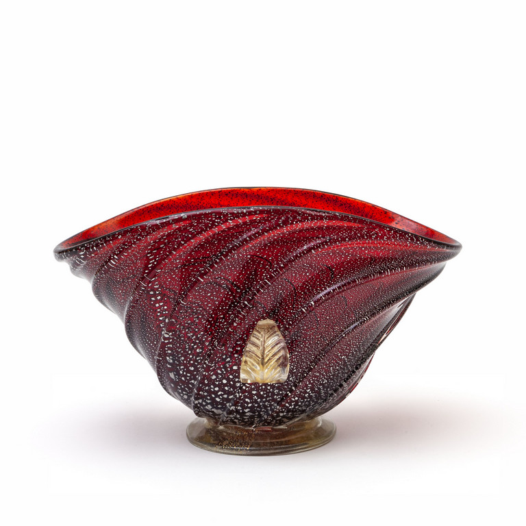 Una coppa in vetro rosso con foglia d'argento