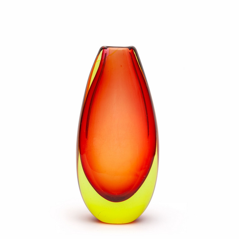 Un vaso in vetro sommerso giallo e rubino circa 1950.
