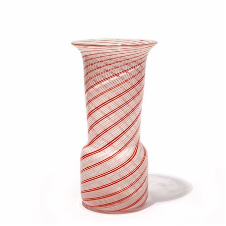 Un vaso a canne ritorte cristallo arancio e lattimo circa 1950.
