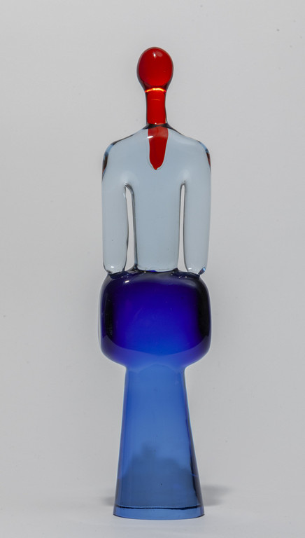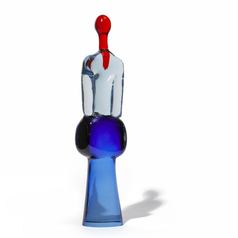 Una rara scultura antropomorfa metafisica in vetro sommerso bluino e rosso sfumato blu circa 1960.