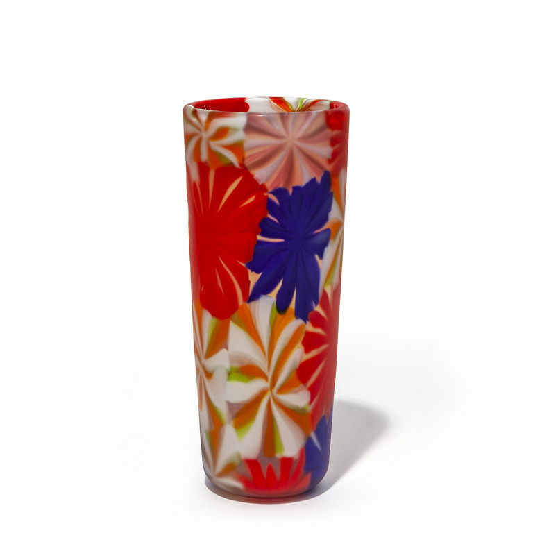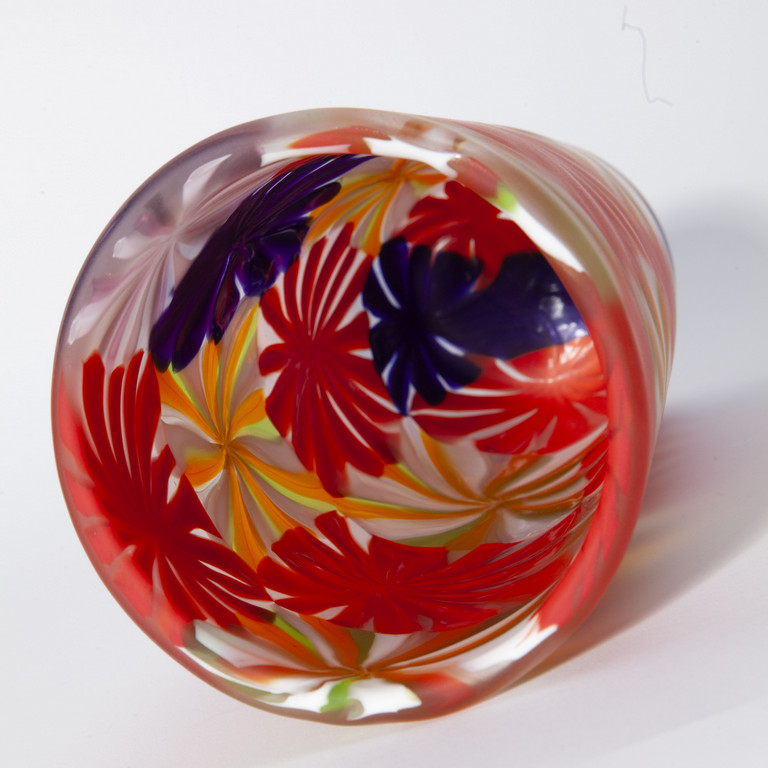 Un vaso acidato a grosse murrine stellate di vari colori circa 1960.