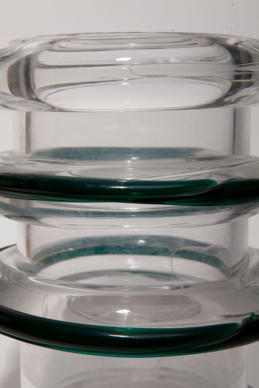 Un vaso 'l'impegno' della serie 'rovine' cilindrico in cristallo con elementi decorativi applicati a caldo 1992.