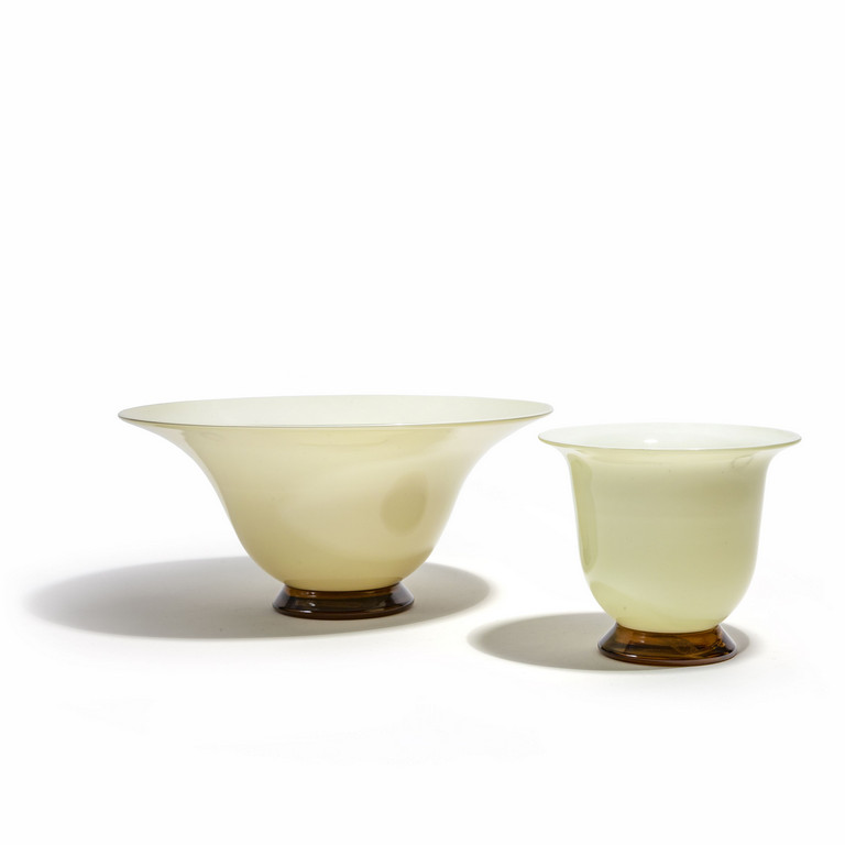 Due vasi della serie 'Opalini' in vetro incamiciato avorio 1999.