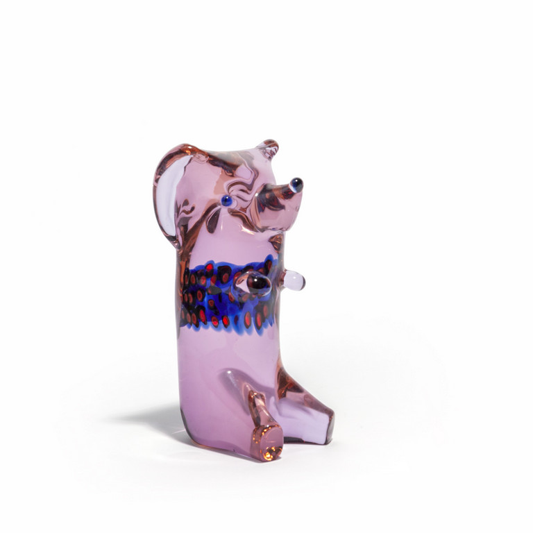 Figura di orso in vetro sommerso con fascia di murrine 1965.