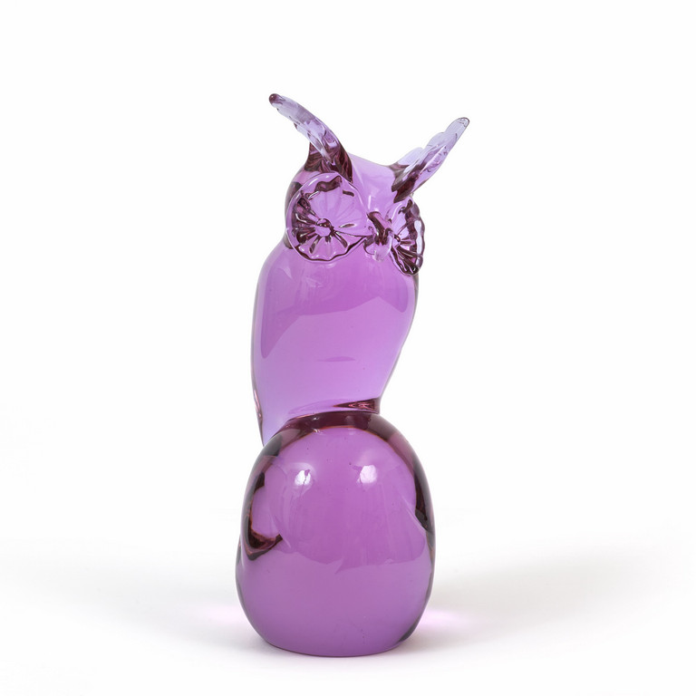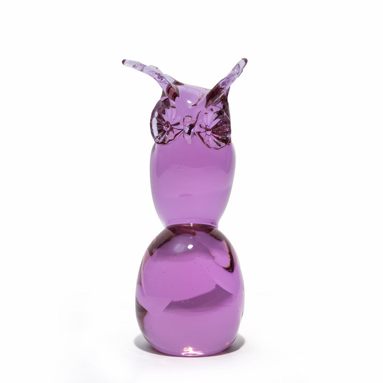 Una figura di civetta in vetro pieno alessandrite circa 1960.