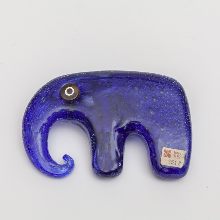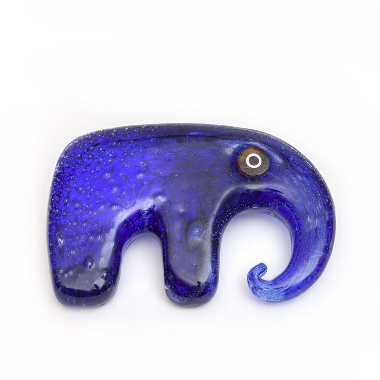Una figura di elefante in vetro 'efeso' blu a bolle irregolari incluse circa 1965.
