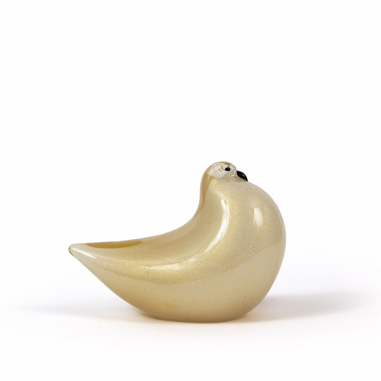 Una figura di piccione in vetro lattimo e foglia oro anni '70.