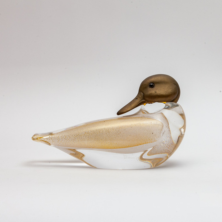 Una figura di anatra in cristallo pieno e foglia oro con testa in bronzo circa 1990.