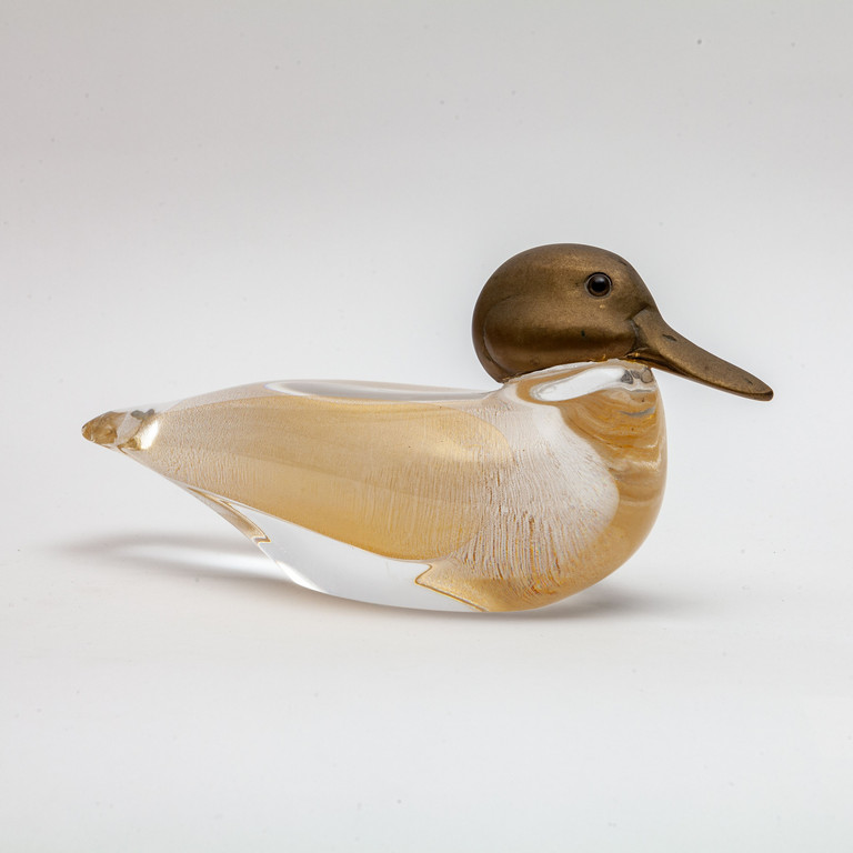 Una figura di anatra in cristallo pieno e foglia oro con testa in bronzo circa 1990.