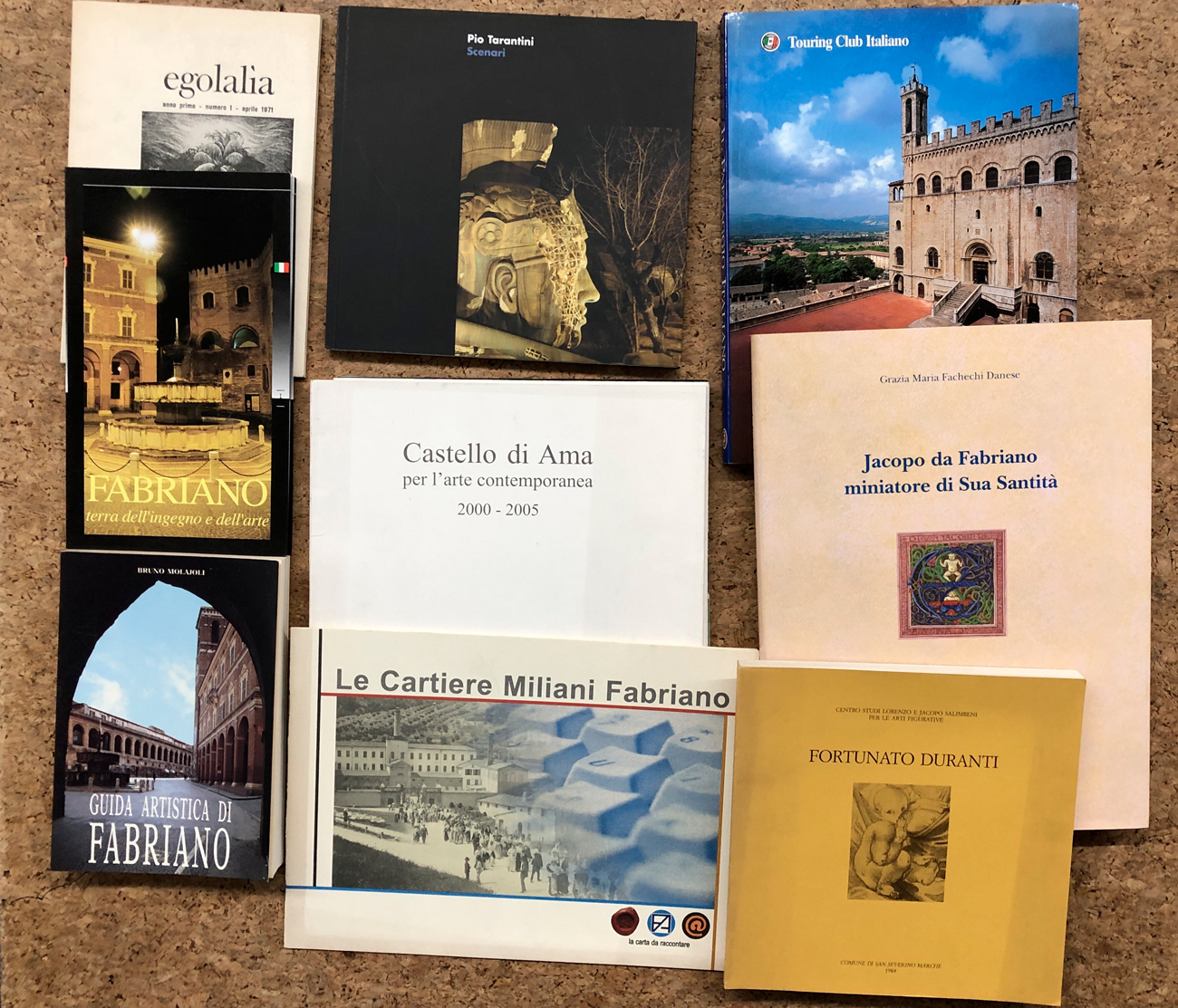 Cartone contenente numerose guide e cataloghi relativi alla storia, alla cultura e al costume di Milano