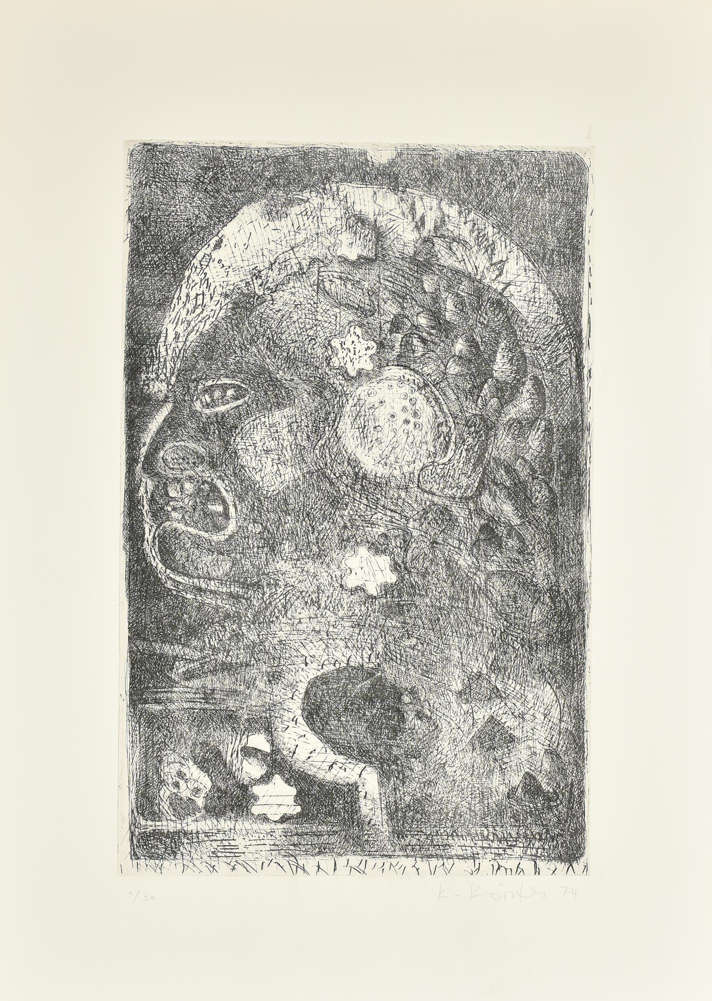 Lotto 55 | Claudio Knopfli SENZA TITOLO incisione su carta, battuta cm 50x32, su foglio...