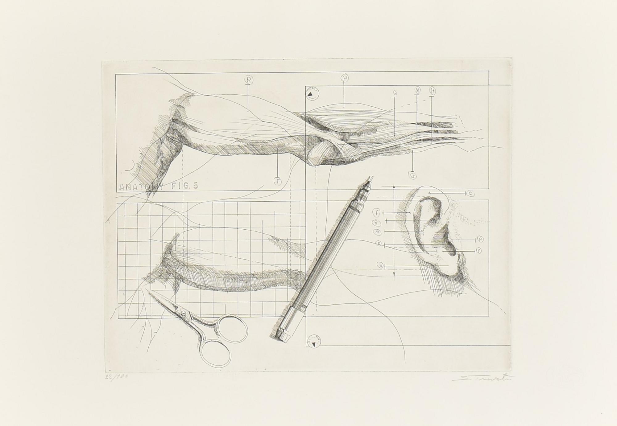 Sebastiano Trovato ANATOMY cartella contenete 5 acqueforti su carta, battute...