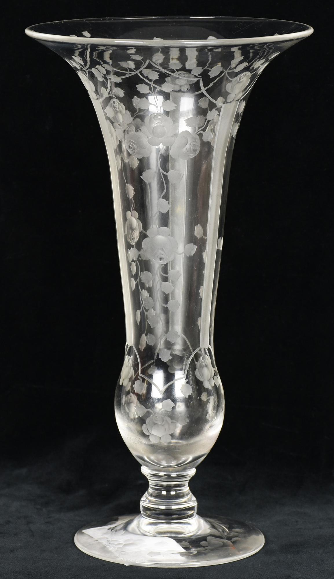 VASO IN CRISTALLO vaso in cristallo finemente cesellato in piccole rose h 25...