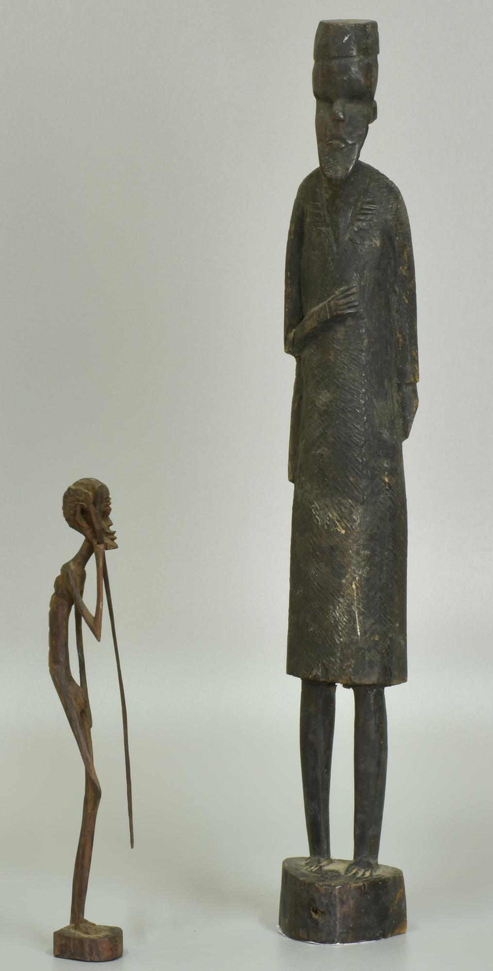 COPPIA DI SCULTURE AFRICANE in legno, h da cm 35 a cm 18
