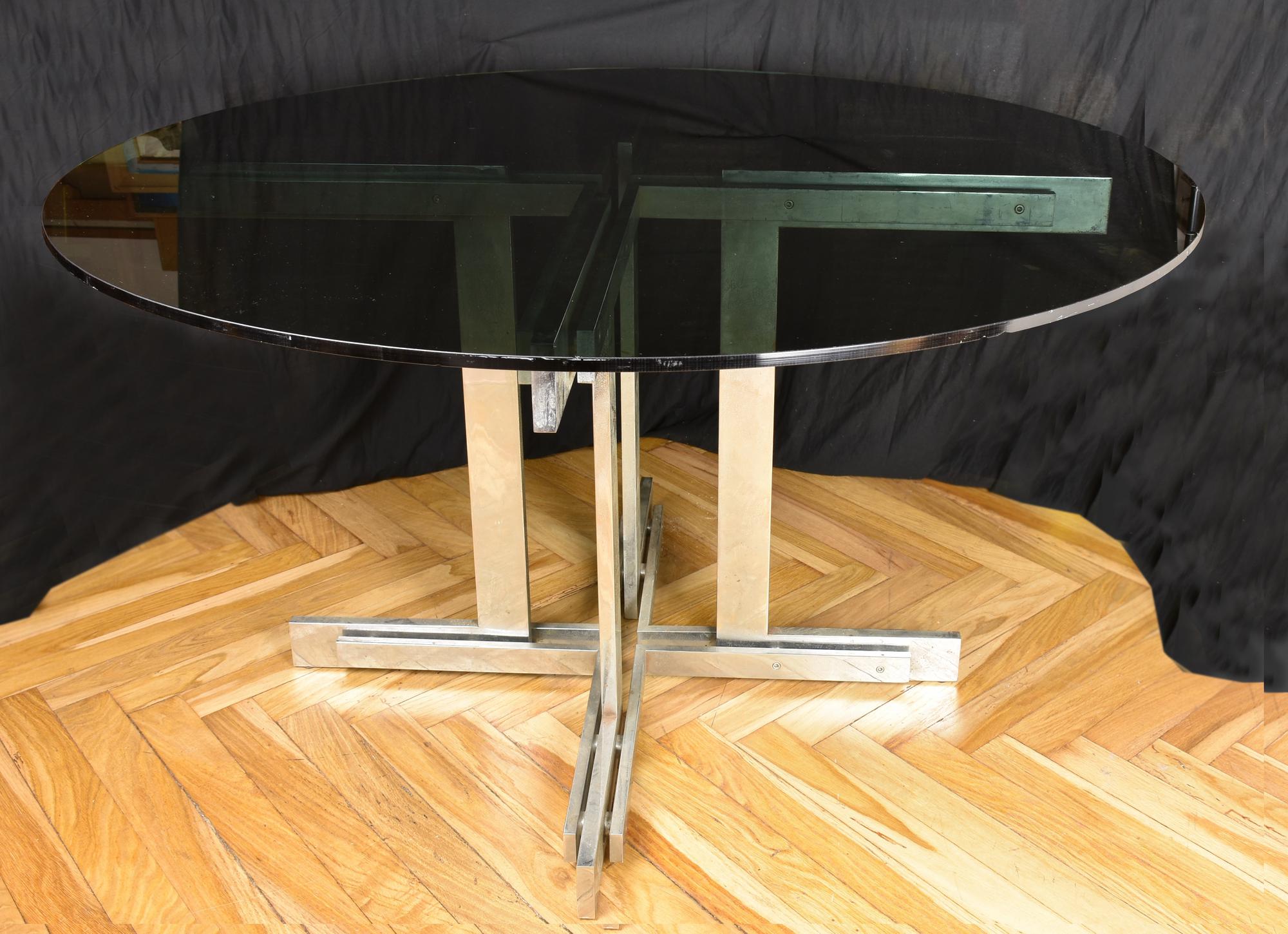 importante tavolo di design attribuito a Willy Rizzo, base in acciaio cromato, piano in cristallo