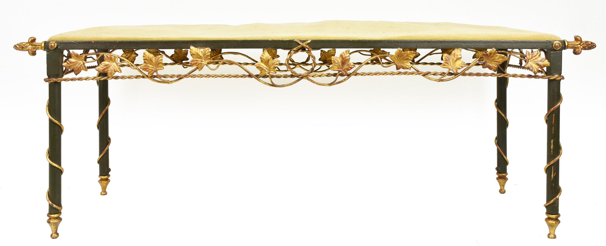 panchetta in metallo con seduta in veluto con decorazione a vitigno