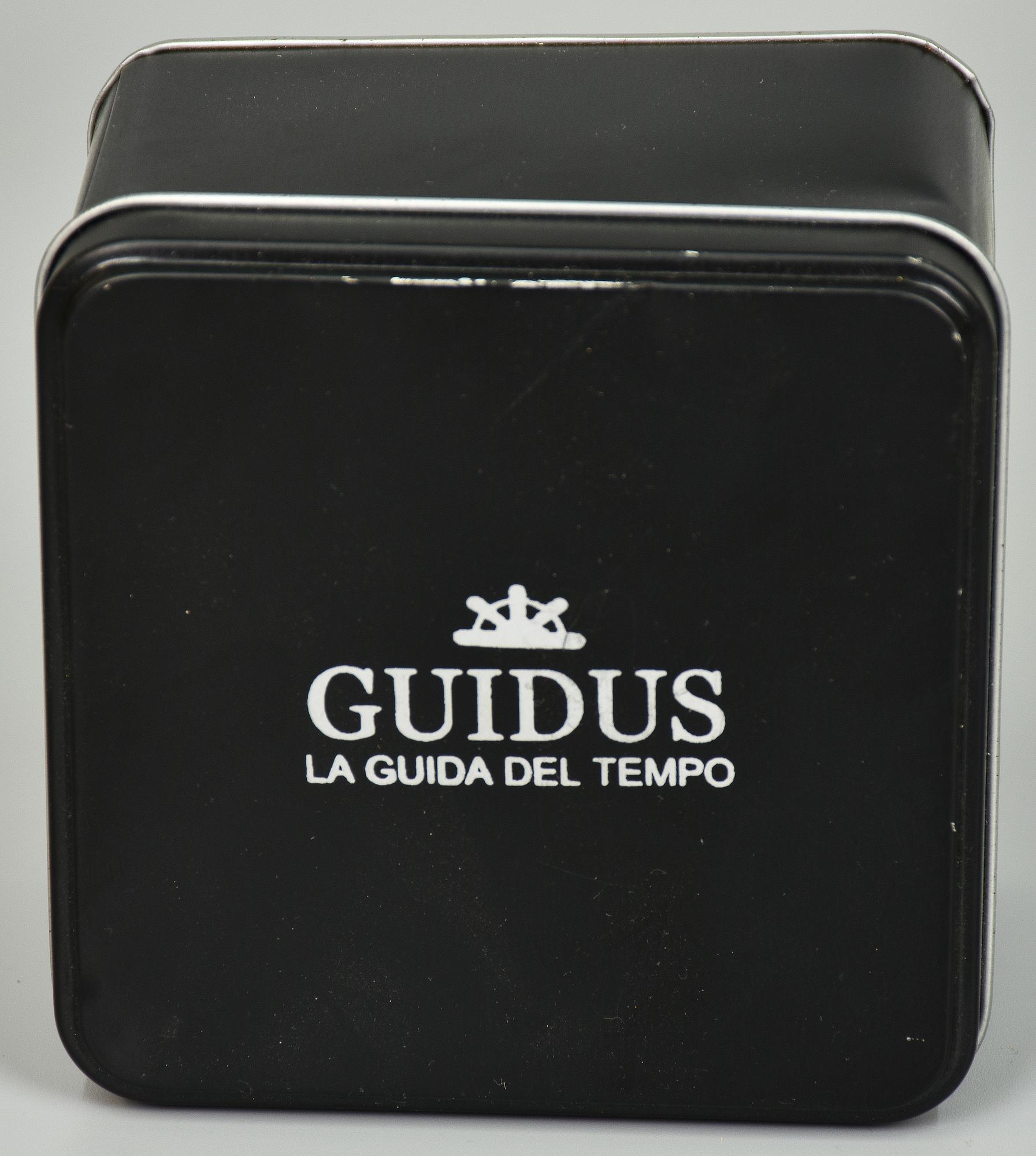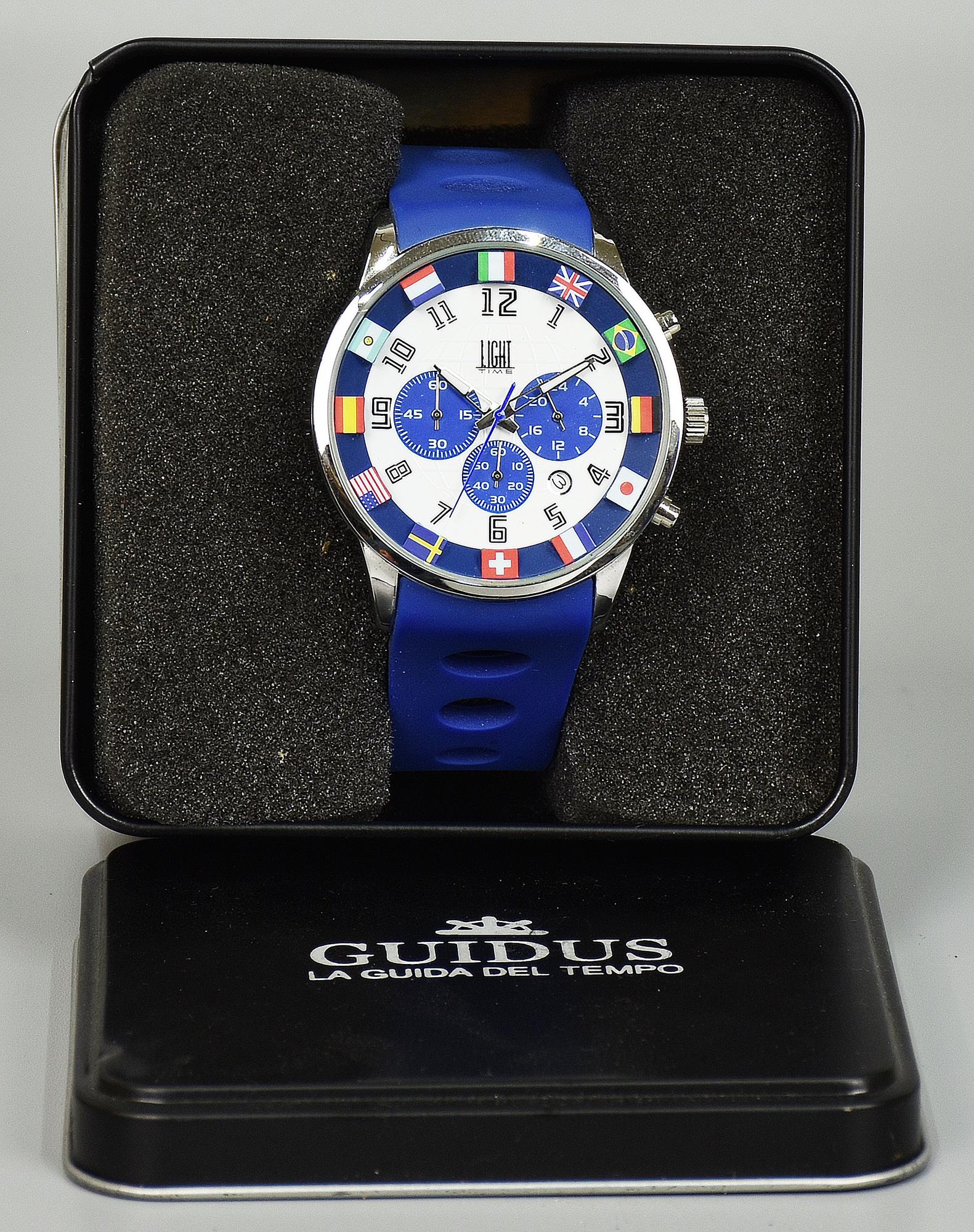 orologio da polso marca Guidus water resistant, bracciale in gomma, completo di scatola originale, nuovo e inusato