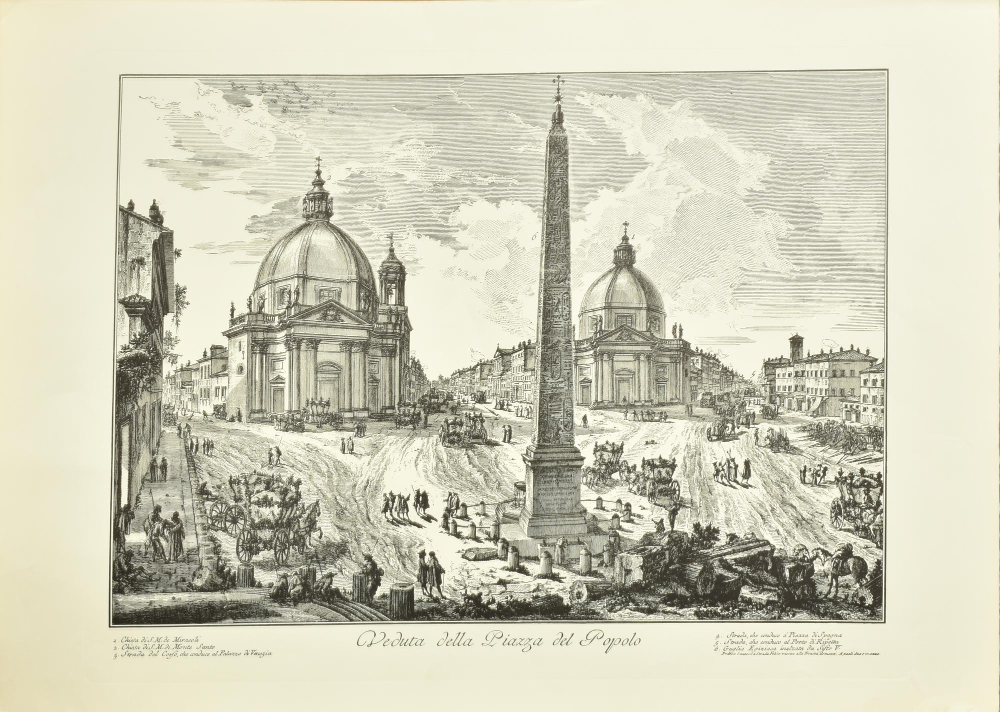 VEDUTA DI PIAZZA DEL POPOLO incisione su carta battuta cm 43x58 su foglio cm...