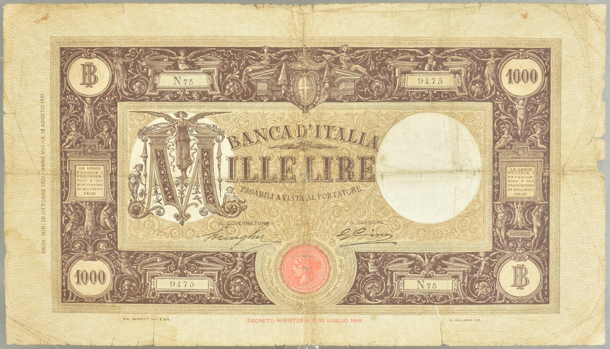 Precedente Lotto 184 Successivo Livebid - Via Tiziano Vecellio 34/D, 10126 Torino ANTIQUARIATO, VETRI, CERAMICHE, PENNE E OGGETTI DA COLLEZIONE Sessione Unica mercoledì 20 aprile 2022 ore 21:00 (UTC +01:00) BANCONOTA DA 1000 LIRE cm 20x26 BANCONOTA DA 1000 LIREcm 20x26