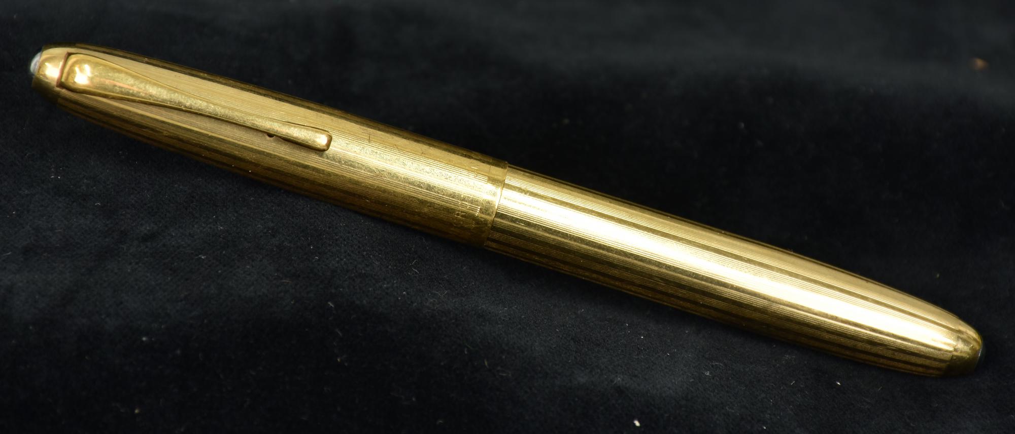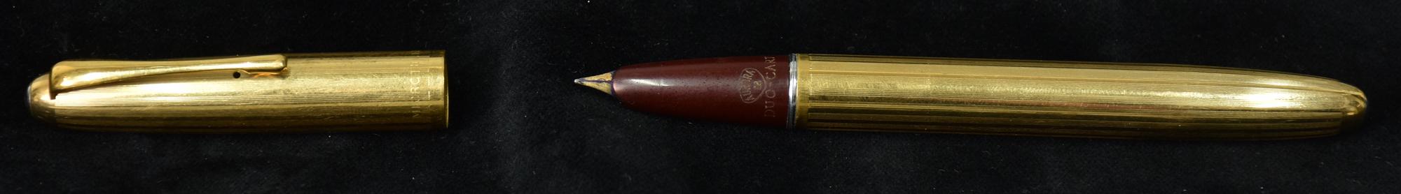 penna stilografica Aurora modello Duo Cart, edizione speciale per Microtecnica Torino, matr. FR 2634, laminata in oro, completa di astuccio originale e garanzia