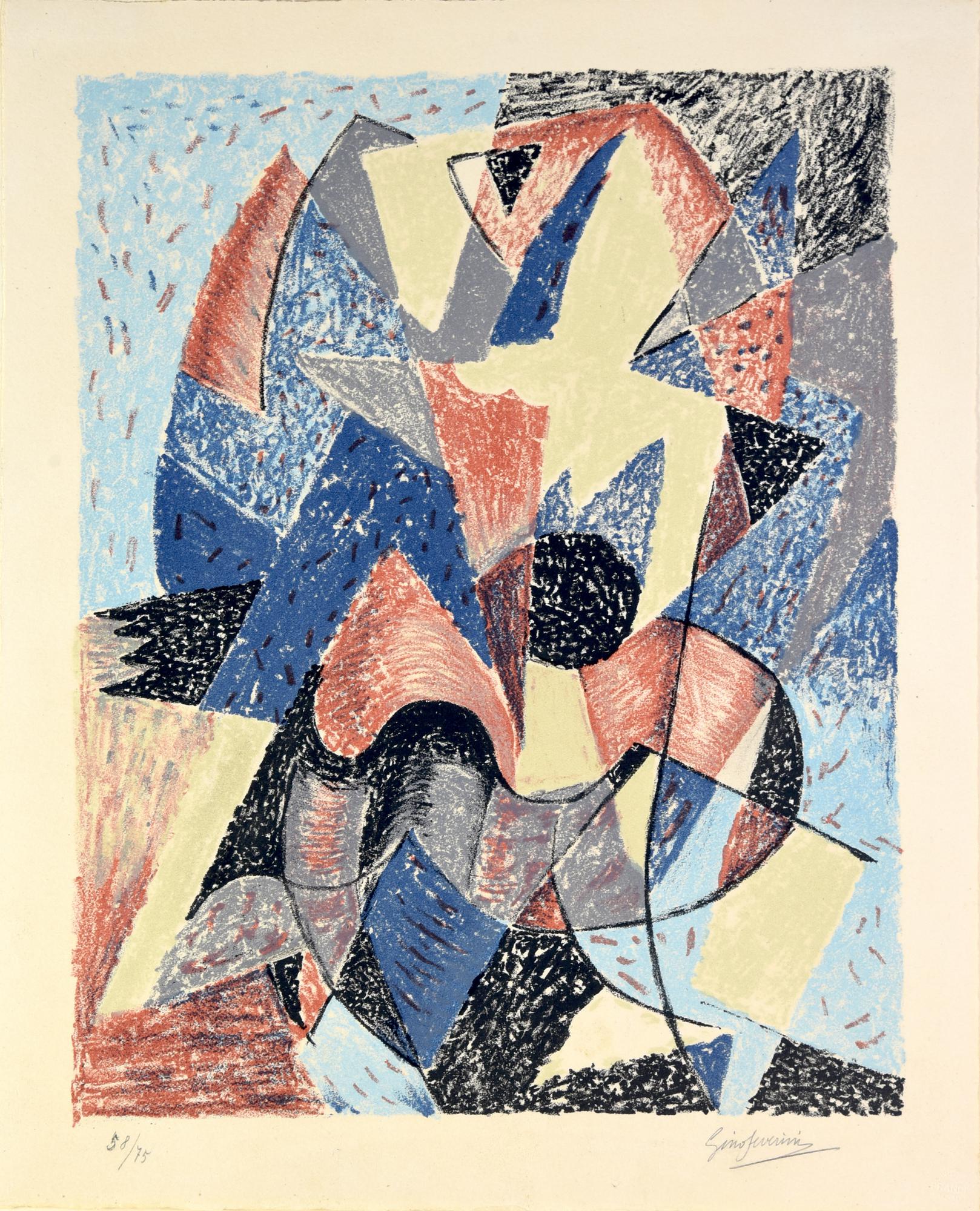 Gino Severini OMAGGIO A BOCCIONI litografia a sette colori, cm 32,5x26,5; es....