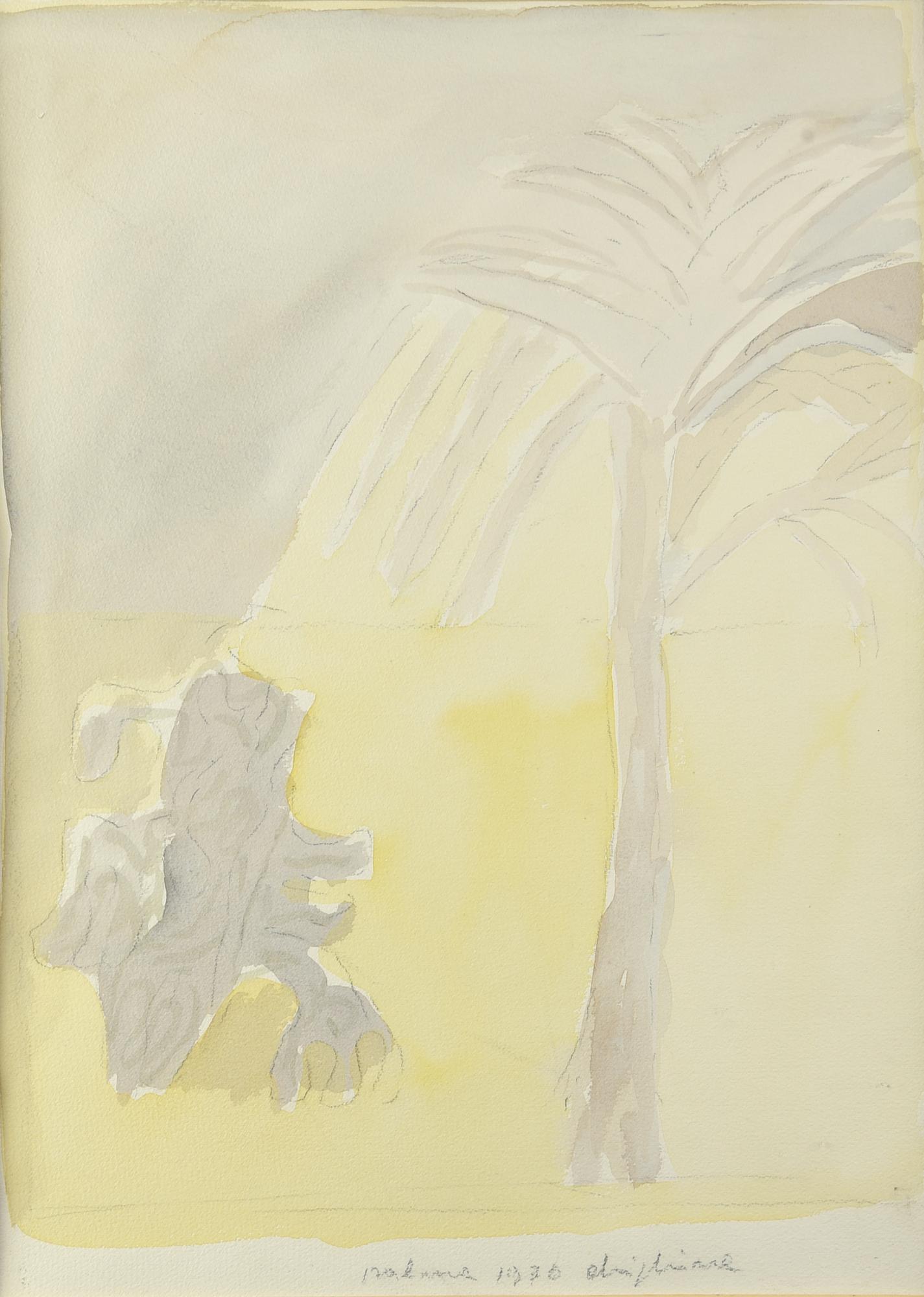 Alfredo Chighine LA PALMA acquarello su carta cotone, cm 49,6x35 firma,...