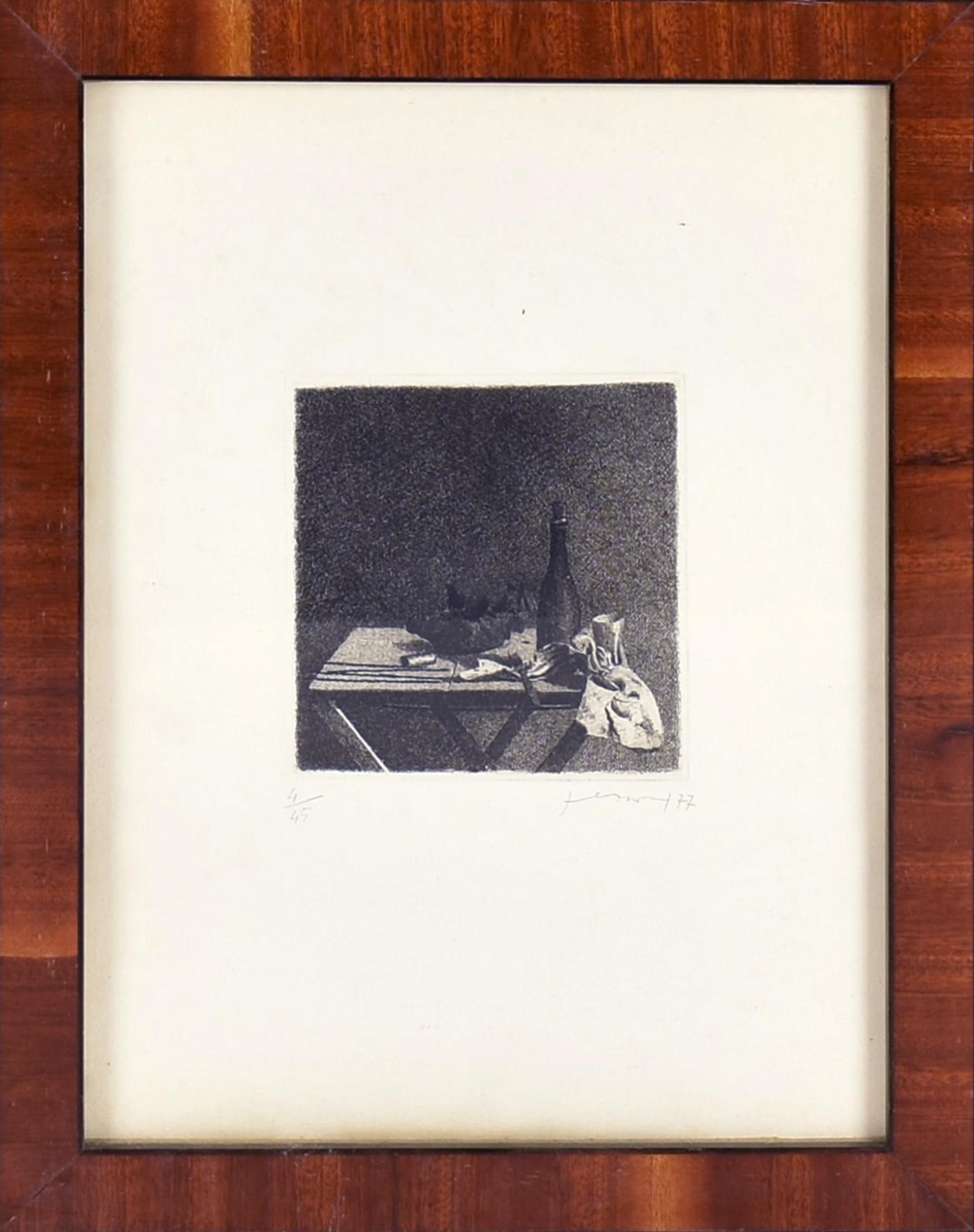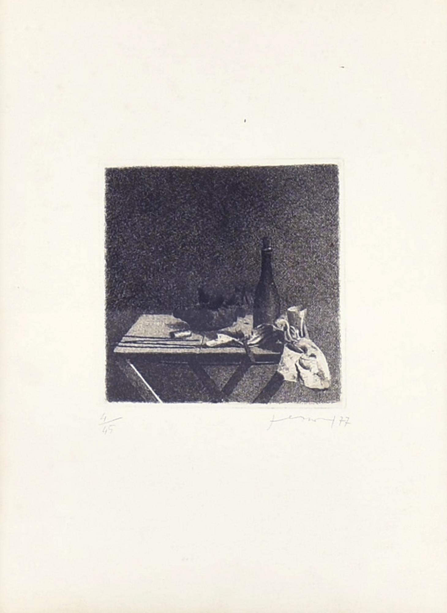 Gianfranco Ferroni NATURA MORTA CON BOTTIGLIA acquaforte, cm 10x10,...