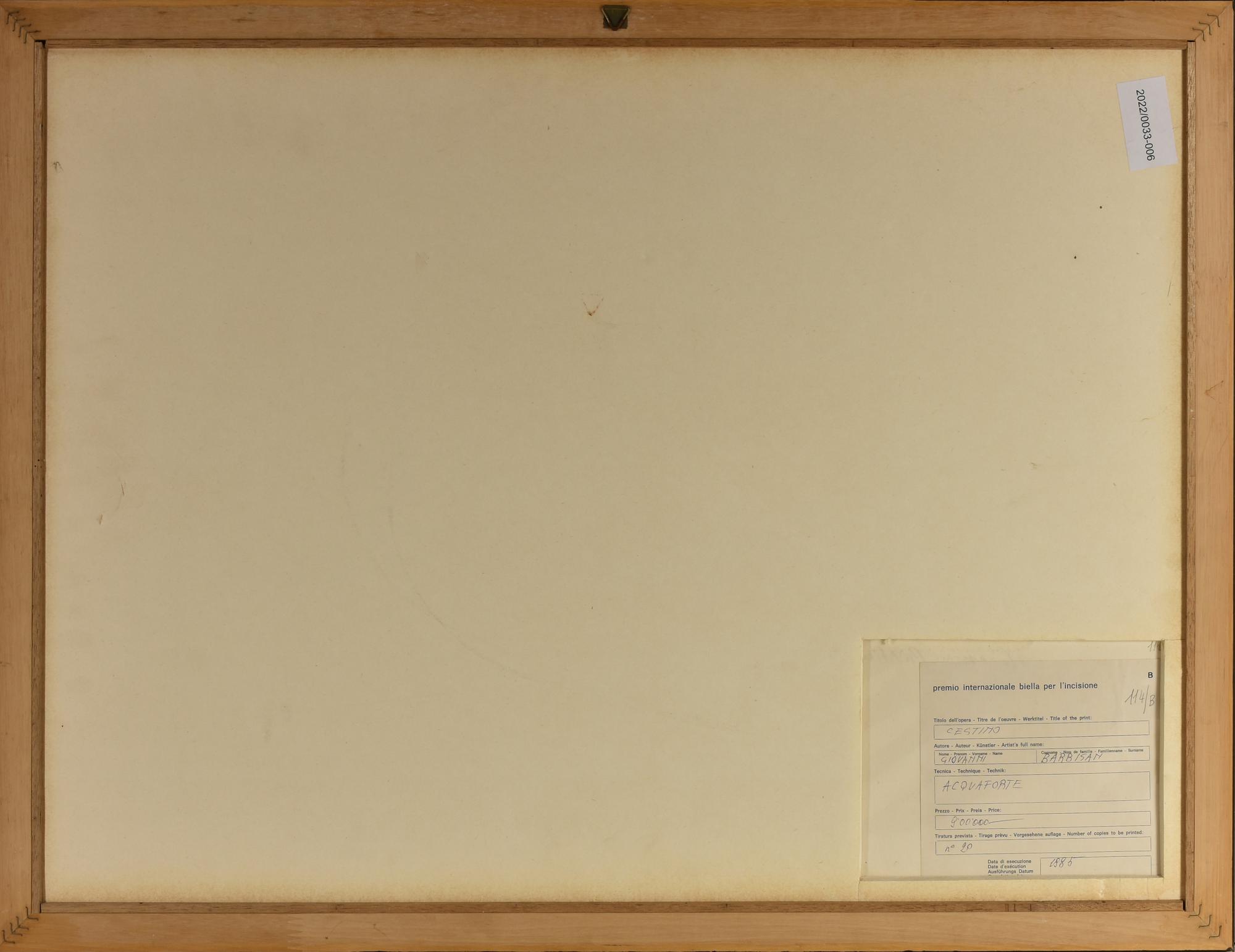Lotto 180 | Giovanni Barbisan CESTINO acquaforte, cm 23x49, su foglio cm 70x50; es. 17/20...
