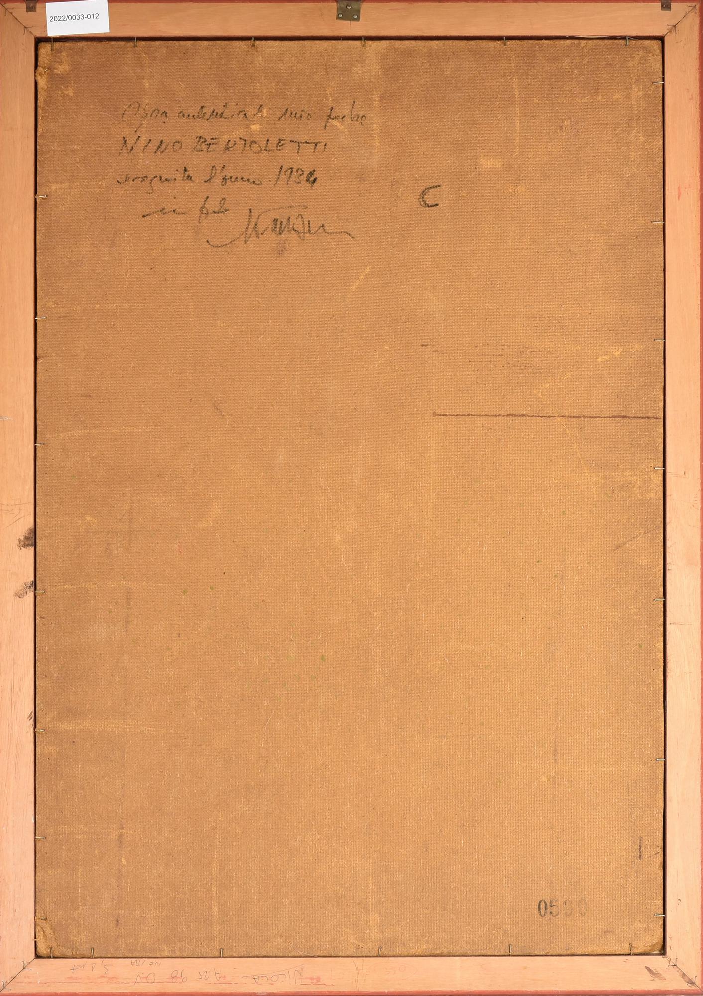 Nino Bertoletti NUDO DI SPALLE olio su masonite, cm 82x54 sul retro: firma e...