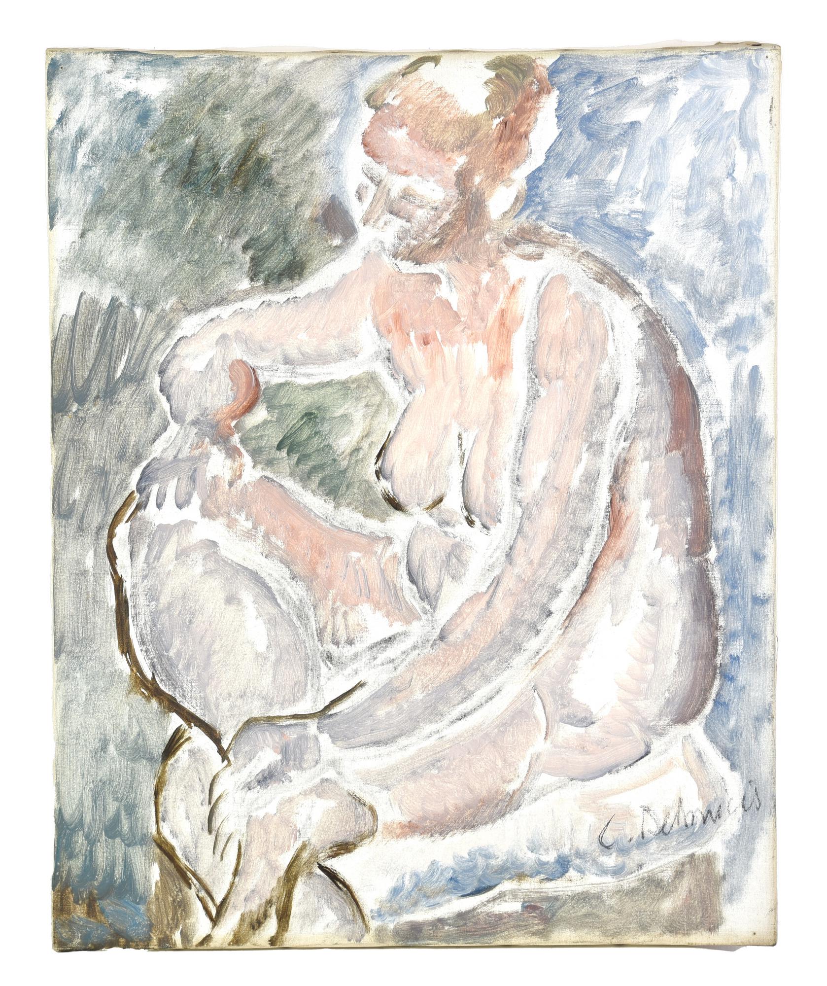 Cristoforo De Amicis STUDIO DI NUDO olio su tela, cm 50x40 firma sul retro:...