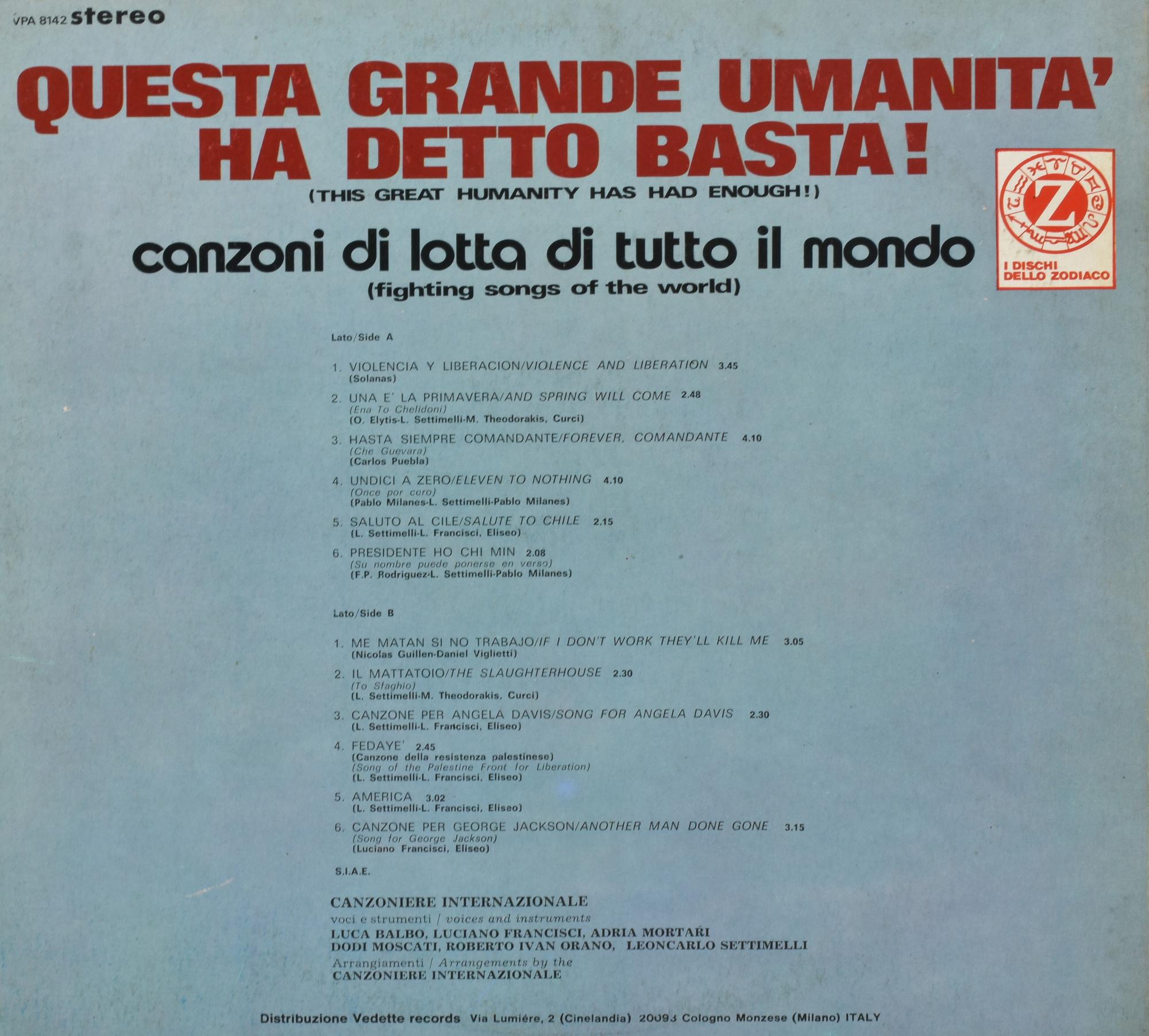 Canzoniere internazionale QUESTA GRANDE UMANITA' HA DETTO BASTA! LP 33 giri,...