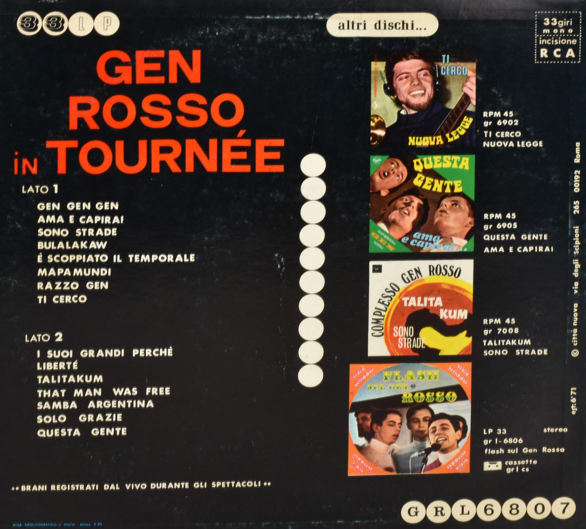 Gen Rosso GEN ROSSO, IN TOURNEE LP 33 giri, stampato da RCA e distribuito da...