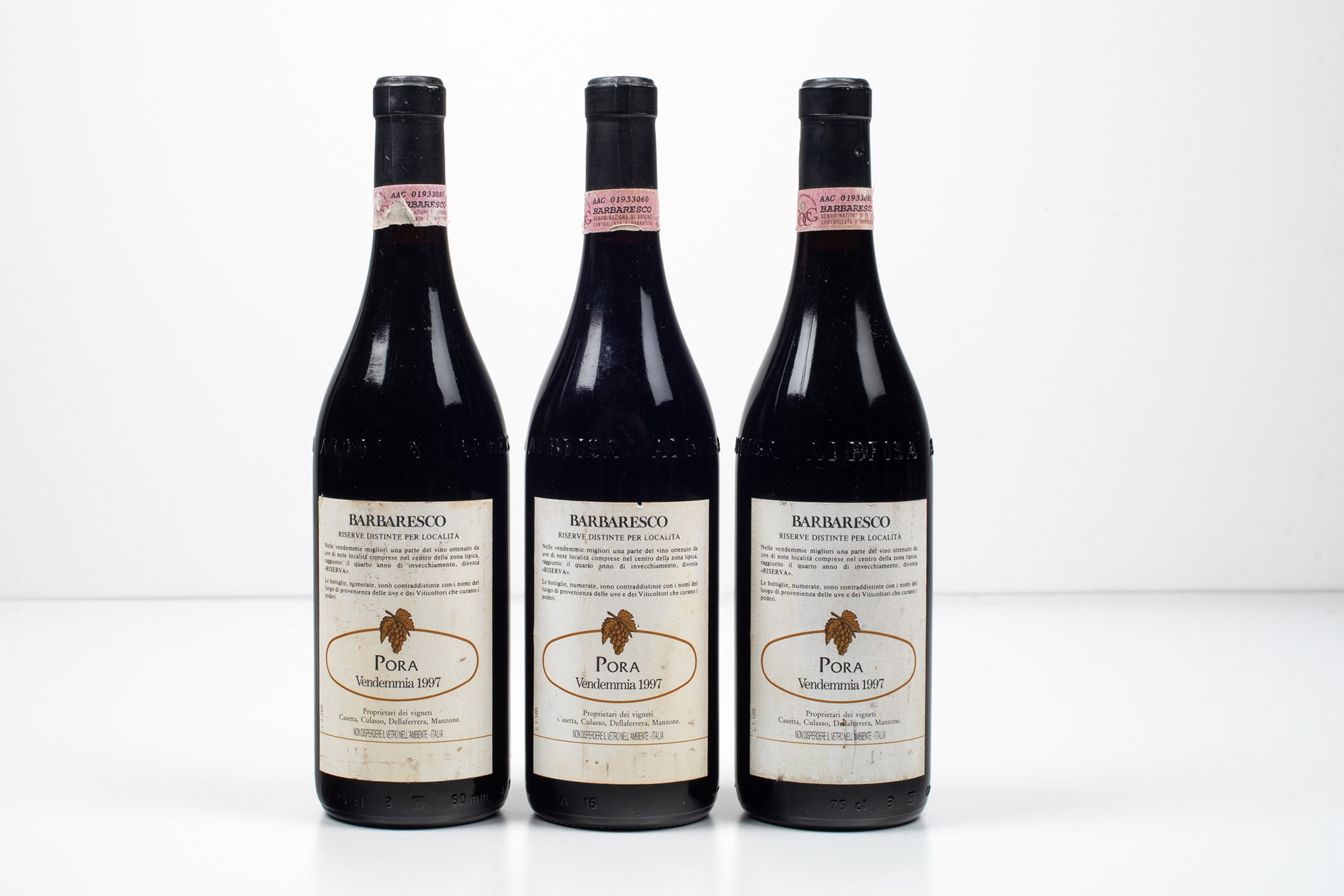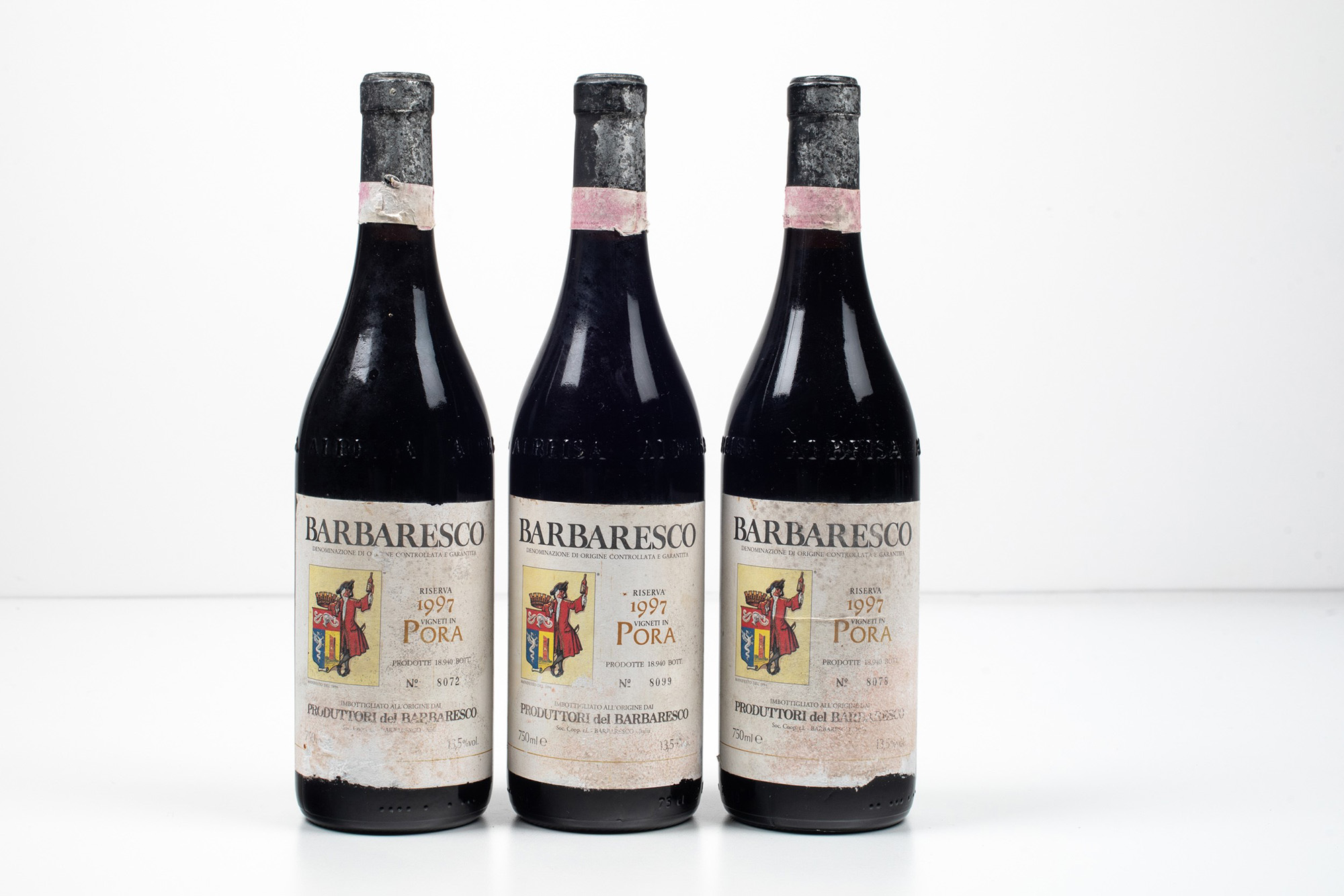 Produttori del Barbaresco, Barbaresco Riserva Pora, (3 Bts), 1997, 3 Bts WN, (etichette e capsule danneggiate), bottiglie nr. 8072, 8099 e 8078