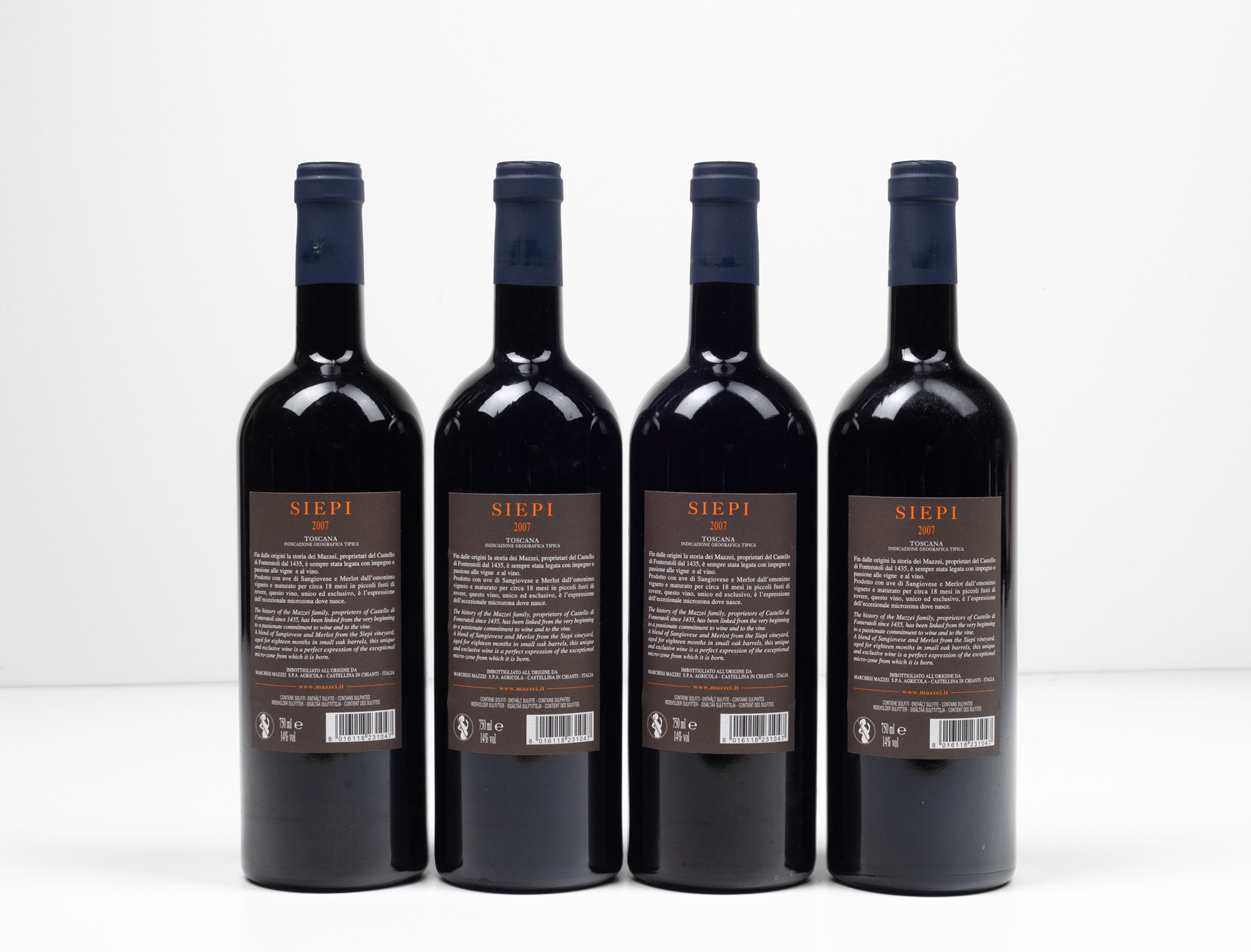 Castello di Fonterutoli, Siepi, (4 Bts), 2007, 4 Bts BN, (etichette e capsule con segni d'usura del tempo)
