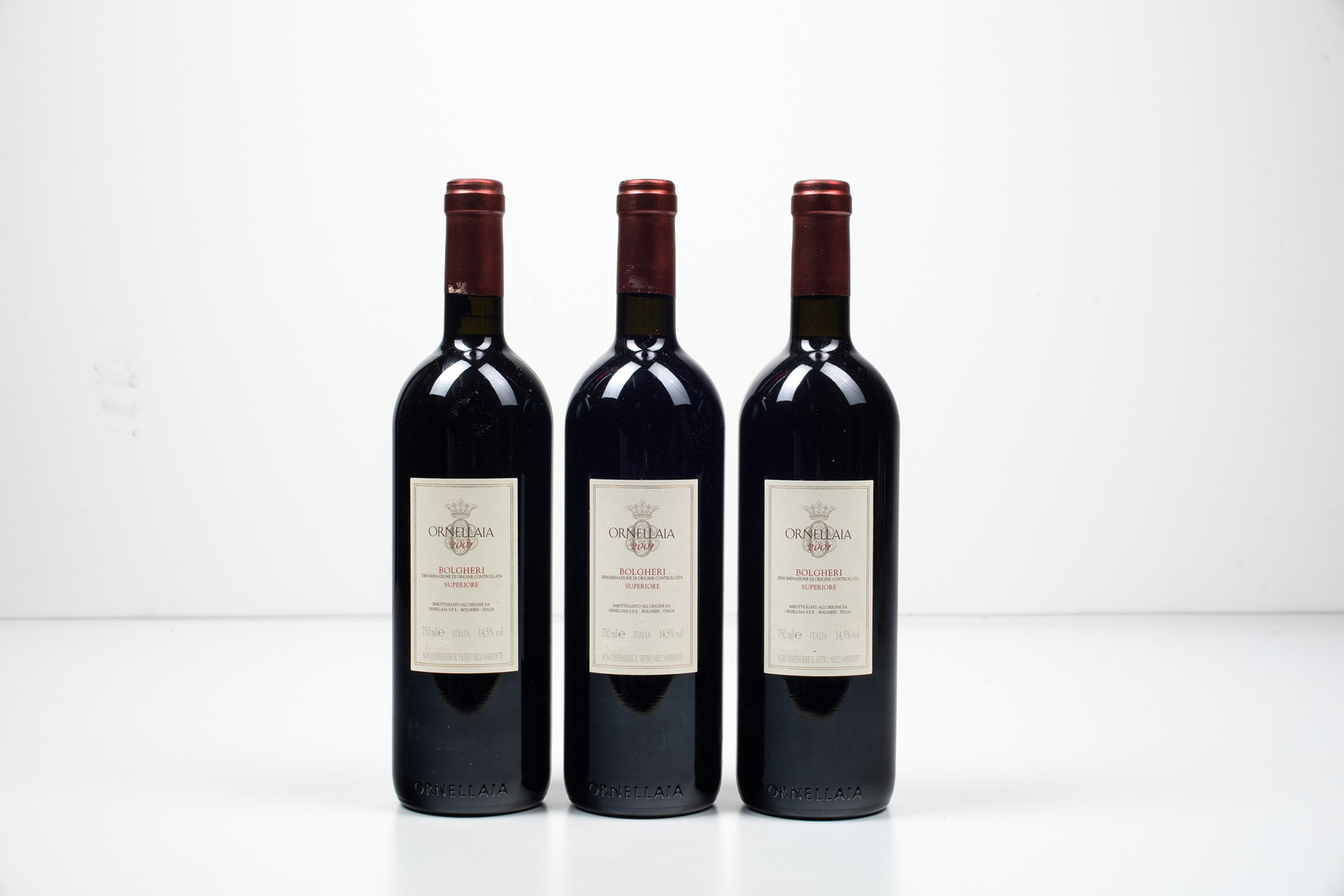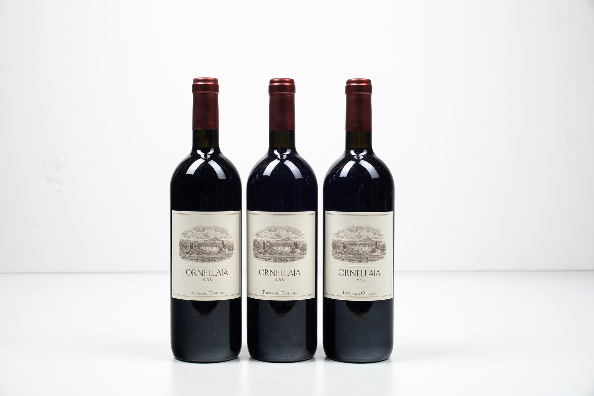 Tenuta dell'Ornellaia, Ornellaia, (3 Bts), 2001, 3 Bts BN, , (etichette e capsule con segni d'usura del tempo)